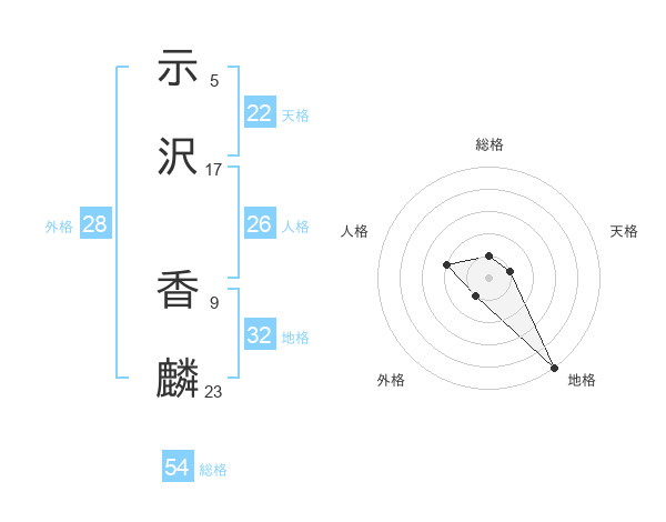 示沢 香麟さんの総格は54画の1点!