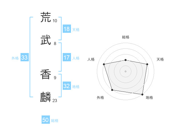 荒武 香麟さんの総格は50画の2点!