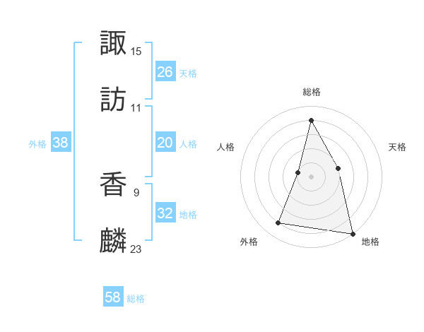 諏訪 香麟さんを姓名の画数から五運を鑑定