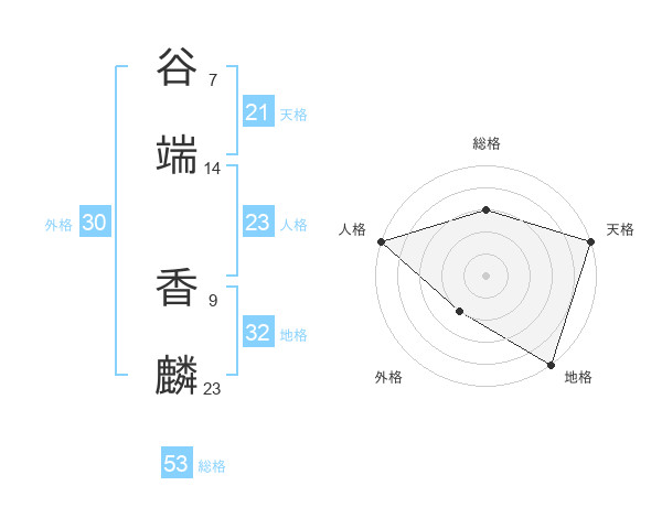谷端 香麟さんの天格は21画の5点!