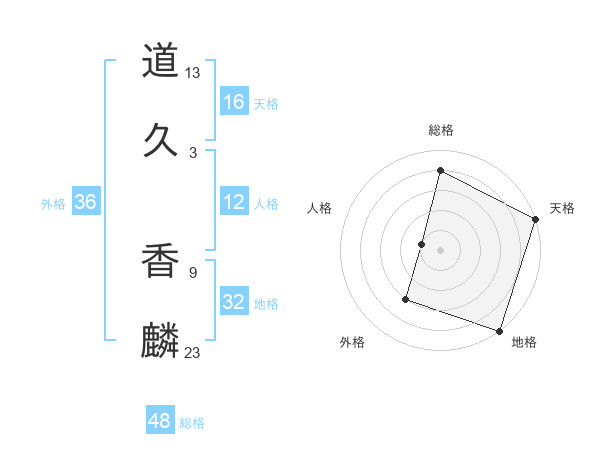 道久 香麟さんの総格は48画の4点!