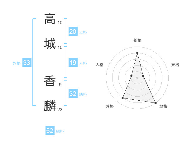 高城 香麟さんの総格は52画の4点!