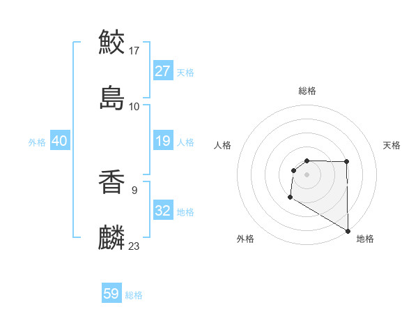 鮫島 香麟さんの総格は59画の1点!