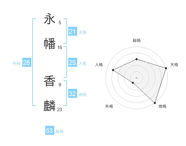 永幡 香麟さんを姓名の画数から五運を鑑定