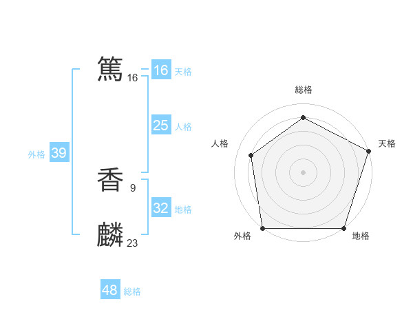 篤 香麟さんの外格は39画の5点!