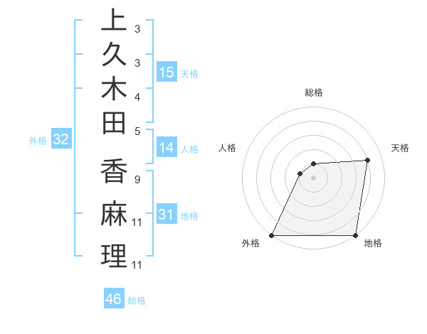 上久木田 香麻理さんを姓名の画数から五運を鑑定