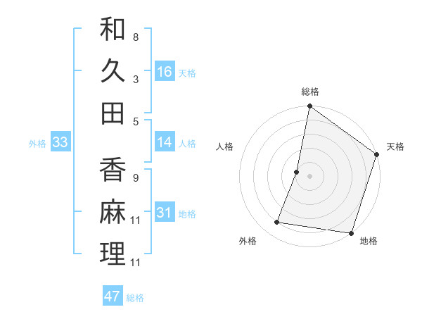 和久田 香麻理さんを姓名の画数から五運を鑑定