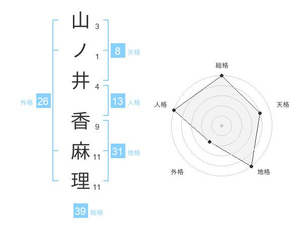 山ノ井 香麻理さんを姓名の画数から五運を鑑定