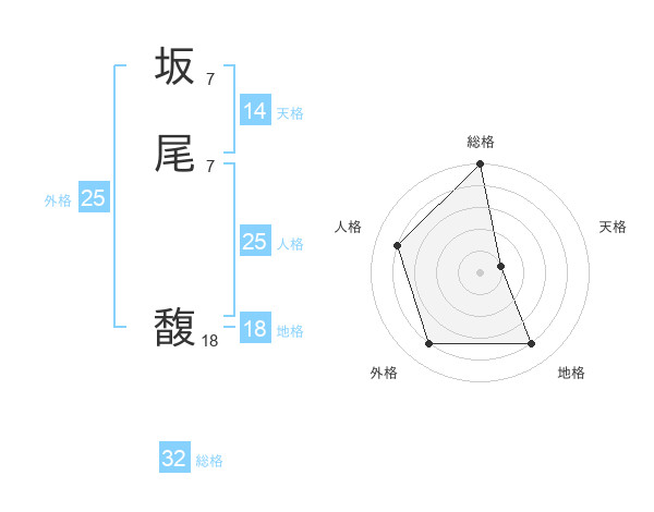 坂尾 馥さんを姓名の画数から五運を鑑定