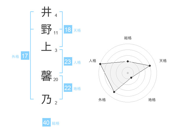 井野上 馨乃さんの天格は18画の4点!