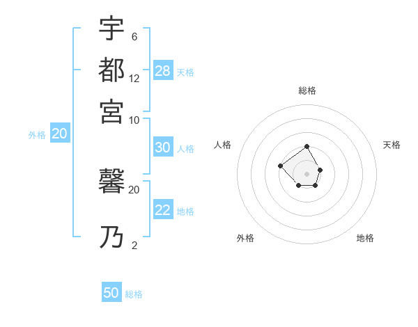 宇都宮 馨乃さんを姓名の画数から五運を鑑定