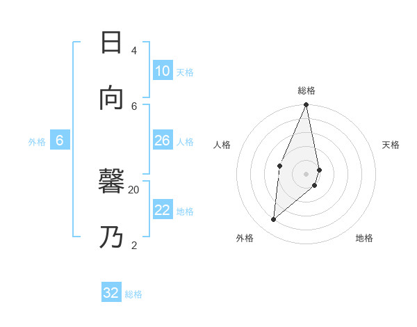 日向 馨乃さんを姓名の画数から五運を鑑定