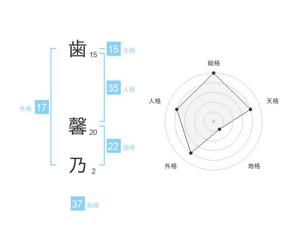 歯 馨乃さんの総格は37画の5点!