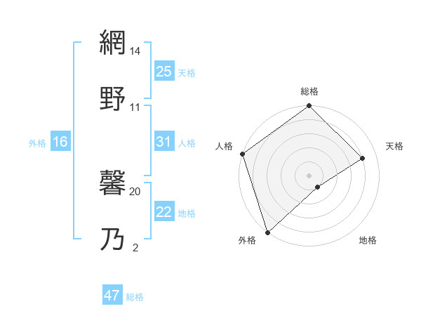 網野 馨乃さんを姓名の画数から五運を鑑定