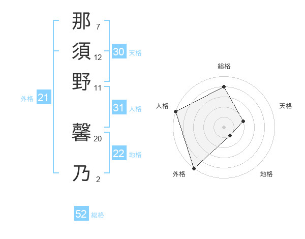 那須野 馨乃さんを姓名の画数から五運を鑑定