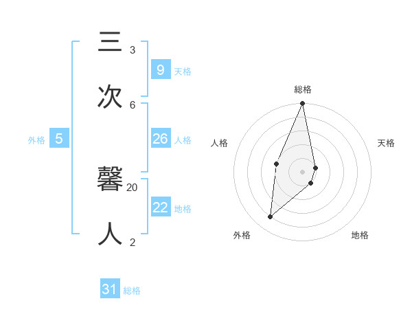 三次 馨人さんの総格は31画の5点!