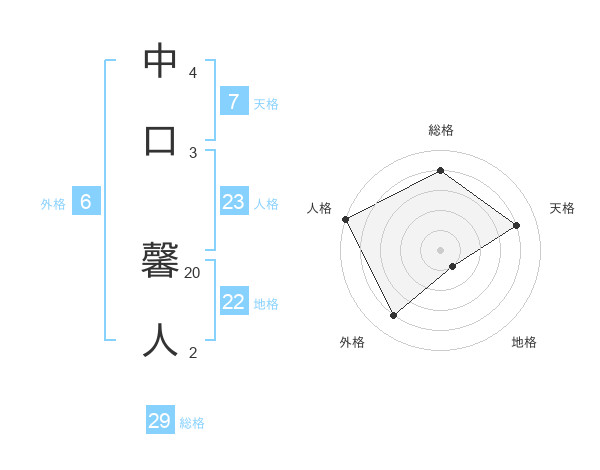 中口 馨人さんの総格は29画の4点!