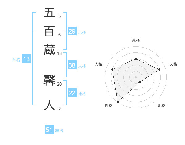 五百蔵 馨人さんを姓名の画数から五運を鑑定