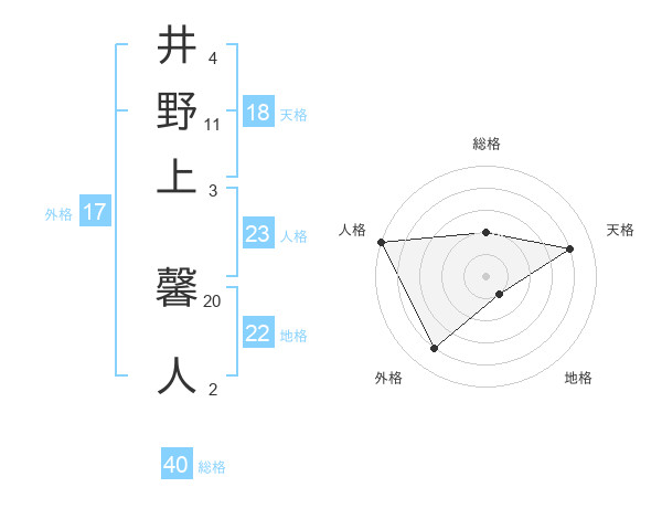 井野上 馨人さんの天格は18画の4点!