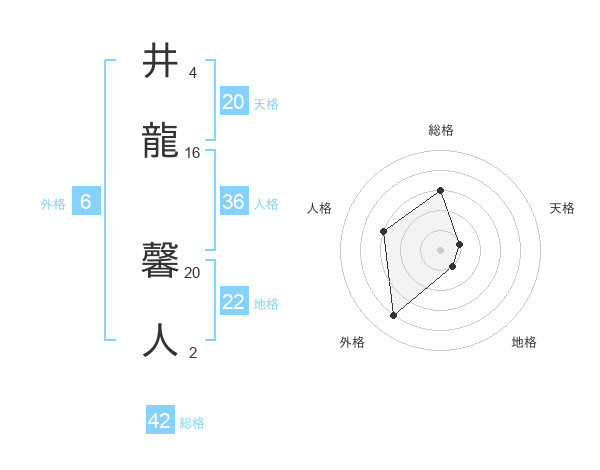 井龍 馨人さんの総格は42画の3点!