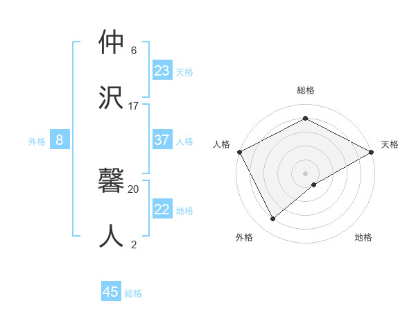 仲沢 馨人さんの総格は45画の4点!