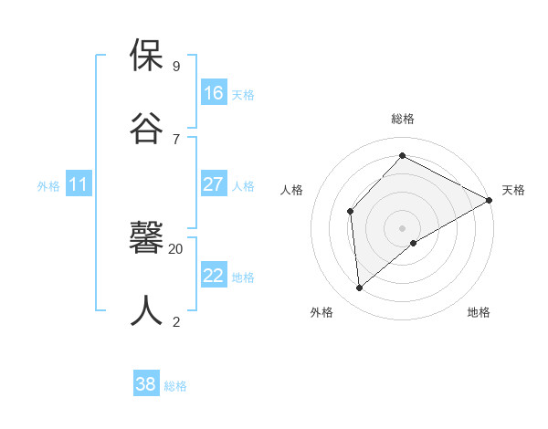 保谷 馨人さんの総格は38画の4点!