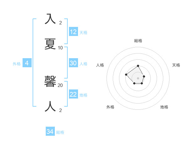 入夏 馨人さんの総格は34画の2点!
