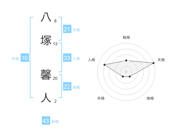 八塚 馨人さんの天格は21画の5点!