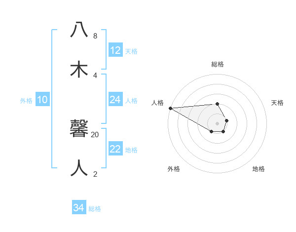 八木 馨人さんの総格は34画の2点