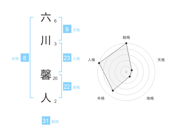 六川 馨人さんの総格は31画の5点!