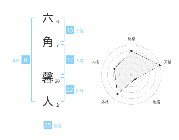 六角 馨人さんの天格は13画の5点!