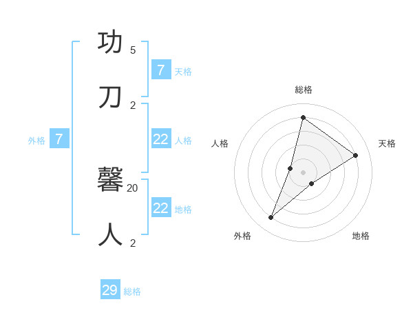 功刀 馨人さんを姓名の画数から五運を鑑定