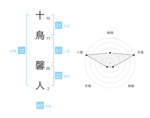 十鳥 馨人さんの総格は43画の2点!
