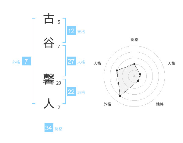古谷 馨人さんの総格は34画の2点!