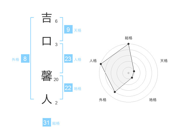 吉口 馨人さんを姓名の画数から五運を鑑定