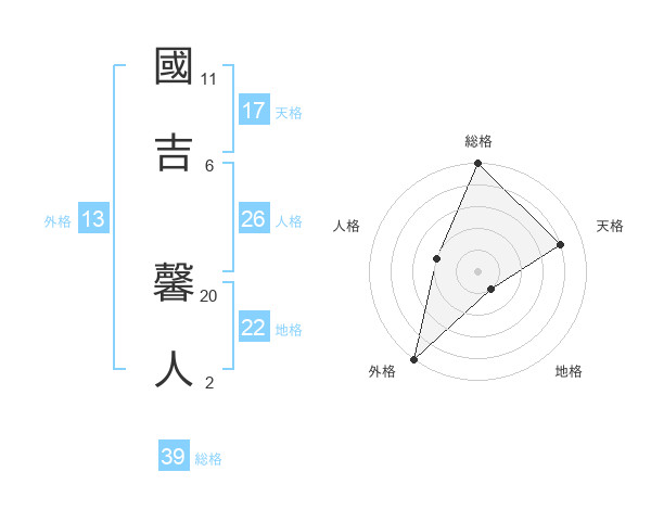 國吉 馨人さんを姓名の画数から五運を鑑定