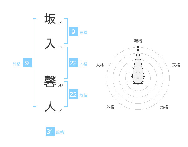 坂入 馨人さんの総格は31画の5点!