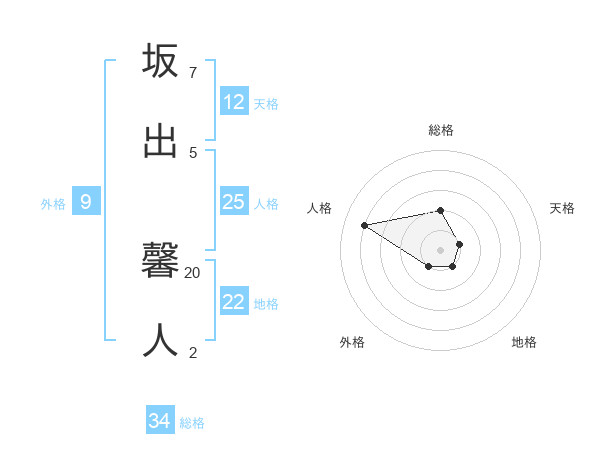 坂出 馨人さんの総格は34画の2点!
