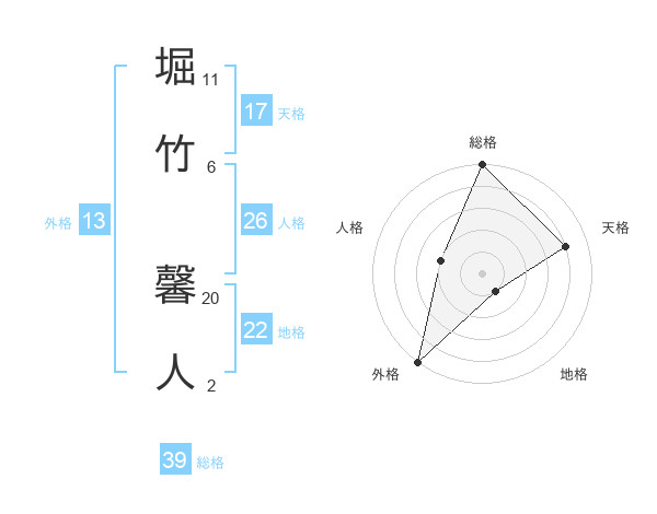 堀竹 馨人さんの外格は13画の5点!