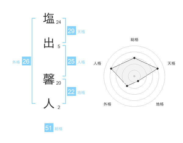 塩出 馨人さんの総格は51画の3点!