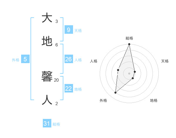 大地 馨人さんの総格は31画の5点!
