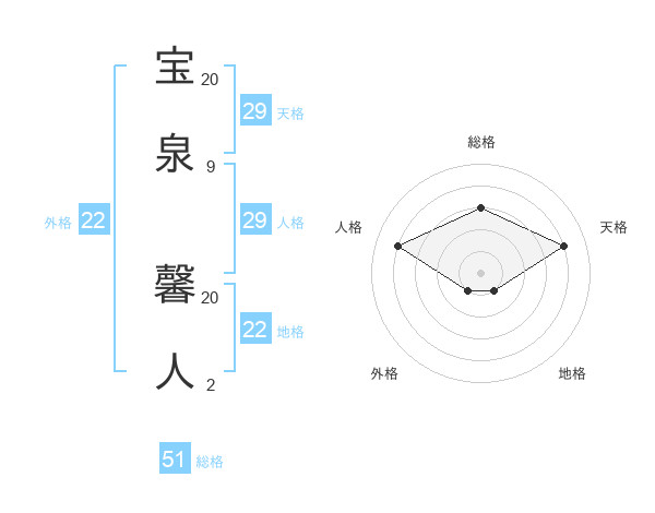 宝泉 馨人さんを姓名の画数から五運を鑑定