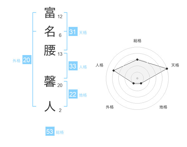 富名腰 馨人さんを姓名の画数から五運を鑑定