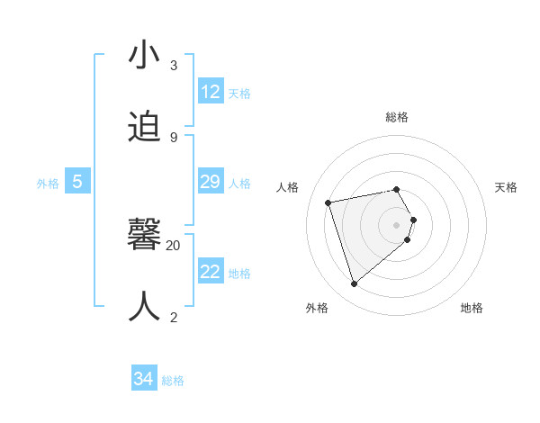 小迫 馨人さんを姓名の画数から五運を鑑定