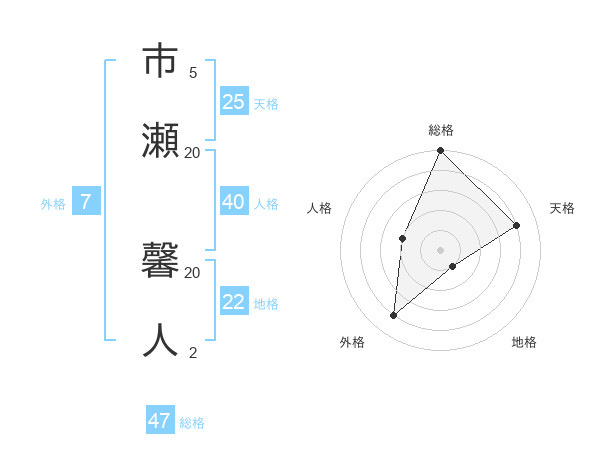 市瀬 馨人さんの総格は47画の5点!
