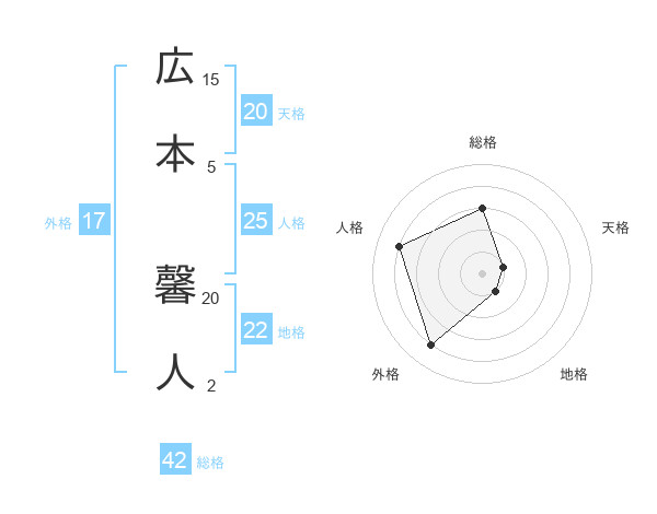広本 馨人さんを姓名の画数から五運を鑑定