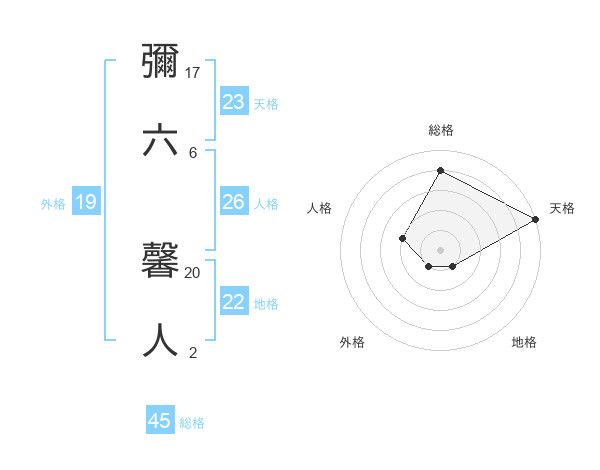 彌六 馨人さんの総格は45画の4点!