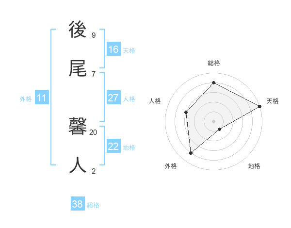 後尾 馨人さんを姓名の画数から五運を鑑定