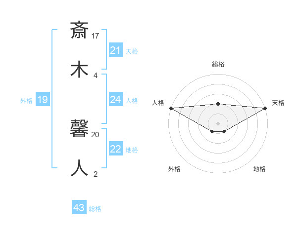 斎木 馨人さんを姓名の画数から五運を鑑定