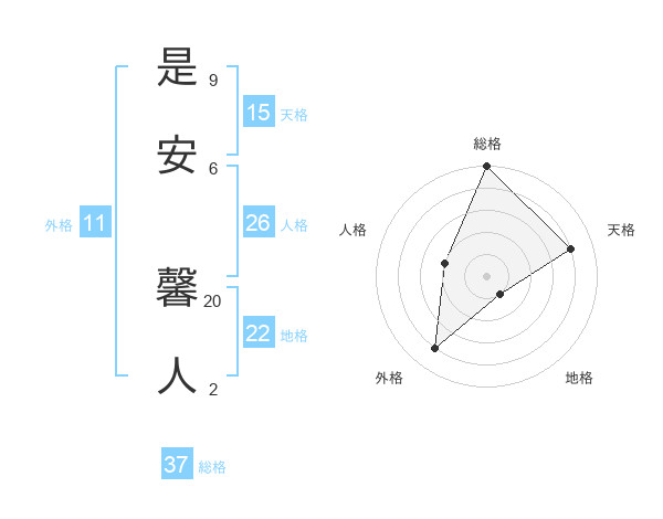 是安 馨人さんの総格は37画の5点!